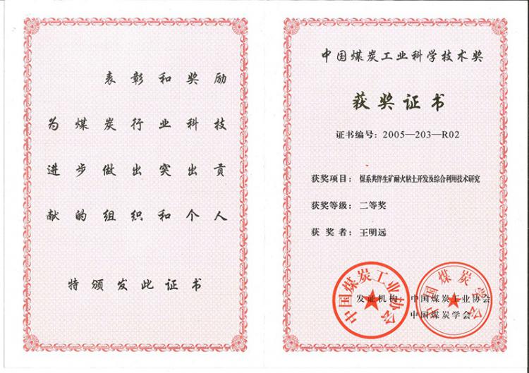 2005年中國煤炭工業(yè)科學(xué)技術(shù)二等獎
