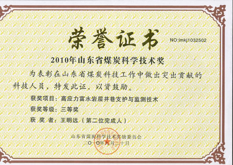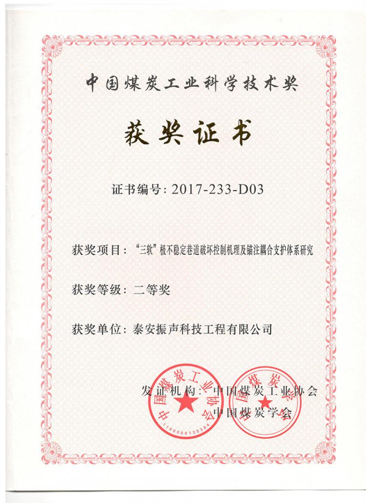 中國煤炭工業(yè)科學(xué)技術(shù)獎二等獎