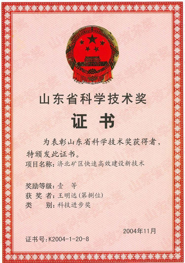 山東省科學(xué)技術(shù)獎一等獎